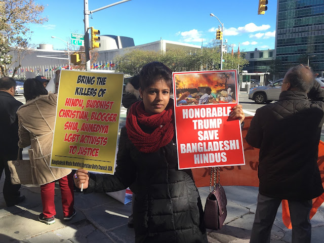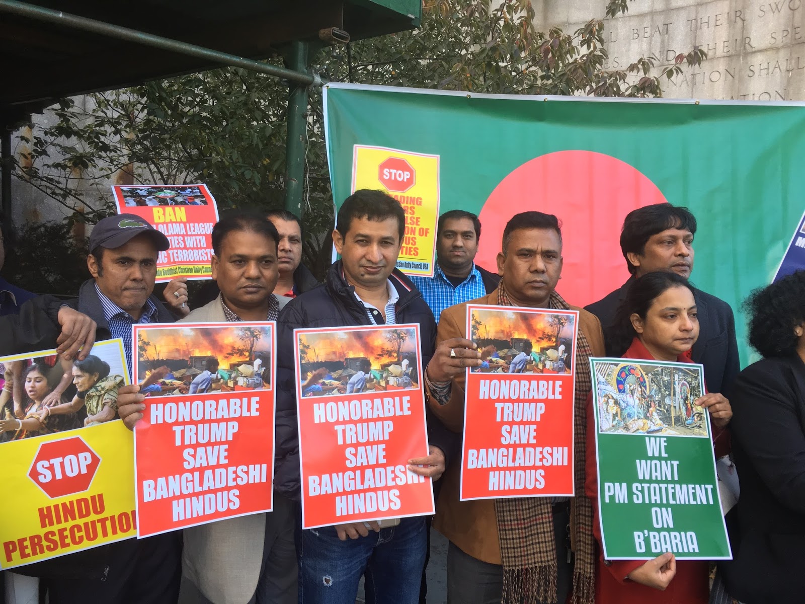 On Friday, November 11th, dozens of Bangladeshi Hindus demonstrated outside the United Nations to oppose violence against Hindus in their homeland, and to rally the community to further support President-elect Donald Trump. The demonstrations come after a new wave of violence against minority Hindus by Islamic radicals in Bangladesh, a nation which borders India to the northeast. In the past weeks, nearly 20 Hindu temples have been vandalized or destroyed and hundreds of Hindu homes and businesses set on fire,damaged or looted. The Islamist violence is allegedly in response to a facebook post which was stated to be “offensive to Islam”. Many influential members of the Bangladeshi Hindu community living in America supported Donald Trump during his campaign, hoping he would curb Islamist violence in the region (see video above). Trump reached out to the Hindu community during his campaign, stating that under his administration “Hindus will have a true friend in the White House,” In October, Trump attended a charity event to raise funds for Bengali Hindu victims of Islamic terrorism.