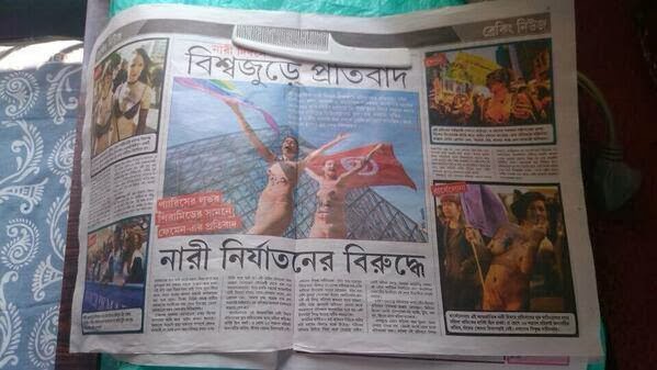 Even if the largest number of Muslim candidates (ever since 1947) has been fielded by political parties in Bengal for Lok Sabha Election, 2014 under the slogan “All for Muslim Votes” barefacedly, the approaches have failed to gratify the everlasting desires for more power ostensibly and hence, it’s the time to flex muscles to have more. This is not any fiction but the gist of the surge in radicalism among the followers of a “peaceful religion.” Nothing else can express the wild ruckus created on March 11in Kolkata by Islamists as part of a protest against a picture published in the Bengali daily ‘Khabor 365 Din.’ The tabloid entertainment supplement or ‘Bibi’ of the newspaper published a few photographs of nude women protesting with Arabic texts and perchance the name of Allah and Muhammad in their bodies against persistent oppressions of Islam on women across the globe. The story was continued in the pages 4 and 5 of the tabloid too. Even if the nude protest of women took place at Paris Louvre Art Museum’s Square on International Women’s Day, Islamists went berserk in Kolkata.