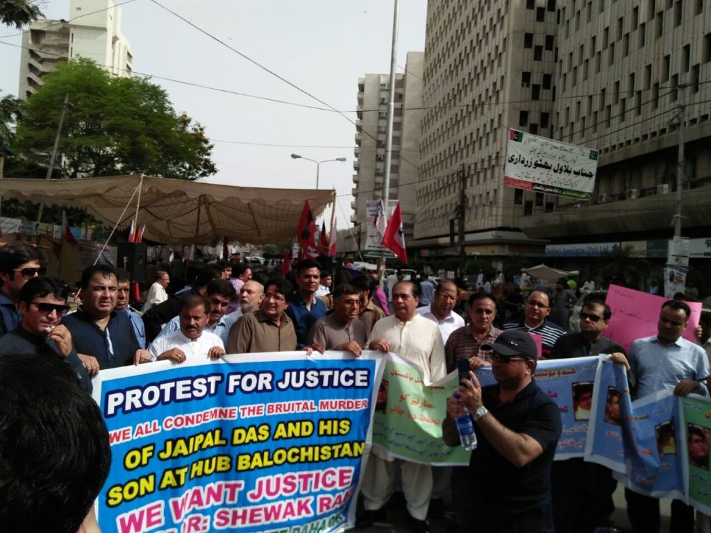 On Sunday 14th May, 2018 in many cities Sindh & Balochistan protest organized by local cities Punchyat with collaboration association Hindu Notables of Pakistan.“This is a social media group,” the lawyer explained. The protesters called for legal and moral support to the family. Das’s seven-year-old son Jarachand was also present at the protest. He demanded that his father and brother’s murderers be hanged.
