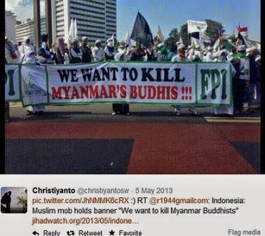How is Indonesia bothered by Burma (or Myanmar). Even if there are problems in Myanmar with the Buddhists and Muslims why should Indonesians want to kill them? Oh wait! All Indonesians aren’t like that, are they? So if I point to Azad Maidan, they’ll say all Muslims aren’t like that. If I point to London and the crowd wanting to kill Salman Rushdie, they’ll say all British Muslims aren’t like that. Who the hell said “all are like that”? But the “sample” you consistently provide on all parameters across the world does get your community that tag. It is not wishful thinking by others. That’s how a college gets voted the best or a country gets voted the happiest. Let’s get back to where we left off in Part-1. Here’s a woman in red, a typical brain-washed Fiberal, who dishes out this same stupid logic. Tommy Robinson of EDL keeps asking how he’s a racist so she explains (0.36 mins):