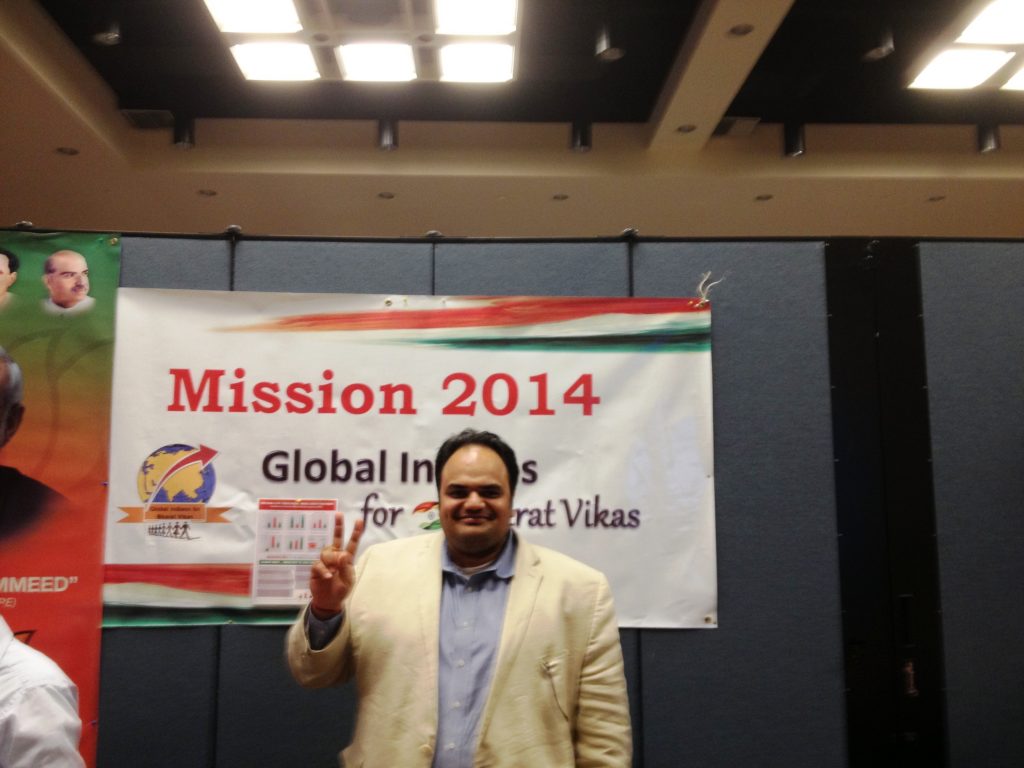 Those dark ages were dangerous for any Modi supporter, especially the public poster boys furthering his campaign and Rahul Chandra was received no different response. Rahul was the prominent member of national IT team and North Houston Co-Ordinator of GIBV – Global Indian’s for Bharat Vikas – an organization founded by Dr. Mahesh Mehta (one of PM Modi’s mentor) which mobilized all US Indian organizations in mid-2013 until the 2014 elections.