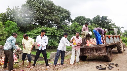 6. Before arrival of HJS activists, 2 tractors were full of idols donated by devotees at Kasaba; but as HJS activists came and explained importance of immersion to devotees, they carried idols for immersion at ‘Teen Hatti Chowk’ which was at a distance of 1 km.