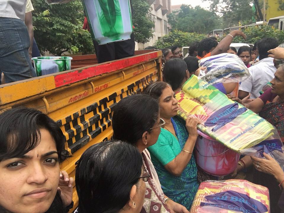 Rashtra Sevika Samiti sevikas visited the flood affected areas at Koturpuram ,chitalapakam to distribute relief materials to the people affected. The kit which was distributed consisted of many items which include blanket,mat,cooking vessel,plate,glass ,bucket,mug etc. Sarees and sanitary napkins were also distributed to ladies.