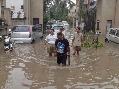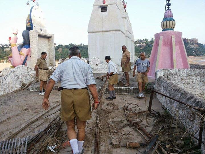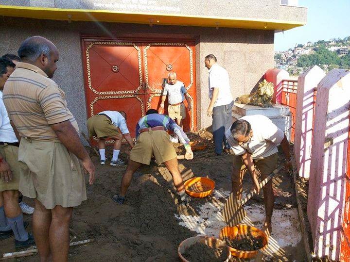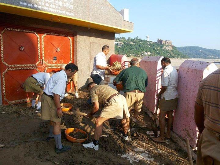RSS swayamsevaks are at relief work following torrential rains at Vadodara, Gujarat.