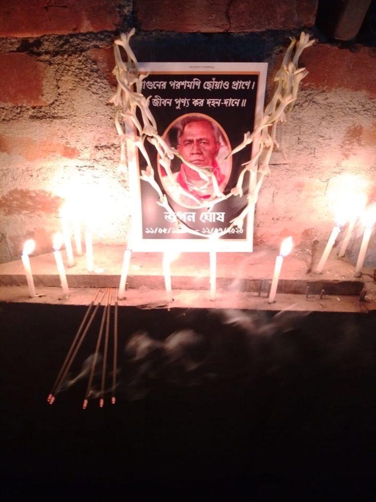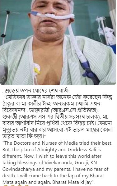 Tapan Ghosh Memorial Page Videos, Tributes and Pictures Posted on July 17, 2020 by WHN Ambulance carrying Tapan Ghosh’s Parthiv body to funeral area Tapan Ghosh’s final words Tapan Ghosh ‘s Parthiv body final ‘Namaste’ to millions of his followers Condolence Message from Center for Hindu Empowerment On The Unfortunate Demise Of Hindu Samhati Leader Shri. Tapan Ghosh Bio-Profile of Tapan Kumar Ghosh