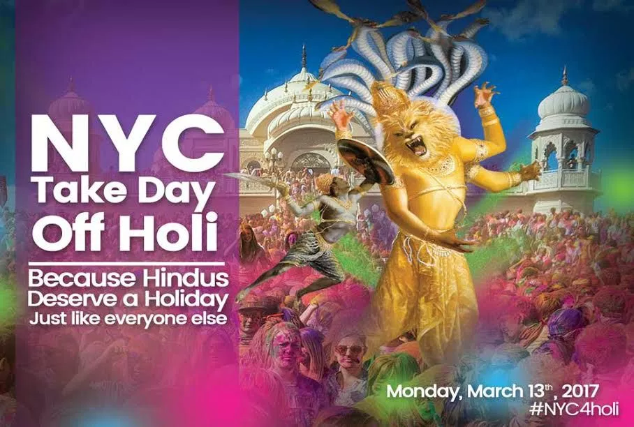 So why will I be taking off Holi this March 13th? Christians, Jews and Muslims have acquired school holidays, and they did this by agitating for it. We Hindus have been pushing for the addition of Holi and Diwali to NYC school calendars for quite some time, but as of yet we have not reached our goal. However, there is some promising movement, the mayor’s office held a Diwali party and some schools are independently adding Hindu holidays to their calendars. But we need to do more, we need to show the powers that be that we Hindus are a single and united voice, that we demand respect and recognition just like everyone else. Like Prahlad, this Holi we need to put our faith in the gods and not our earthly rulers. The lack of any Hindu presence in schools and businesses will send a clear message to our leaders, they have to give to get. To show my support for the Hindu Holidays Campaign, I will be staying home from work this March 13th, I hope you will do the same.